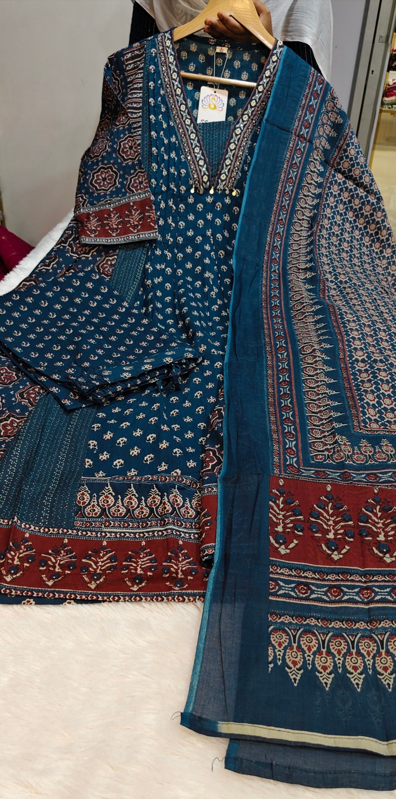 Elegant Premium Cotton Chudi Set designed for comfort and style. Crafted from high-quality breathable cotton fabric, this outfit ensures all-day comfort while maintaining a trendy look. Featuring a stylish side-open or umbrella/A-line kurti design paired with a perfectly matching bottom and dupatta, this set is ideal for both casual wear and festive occasions.