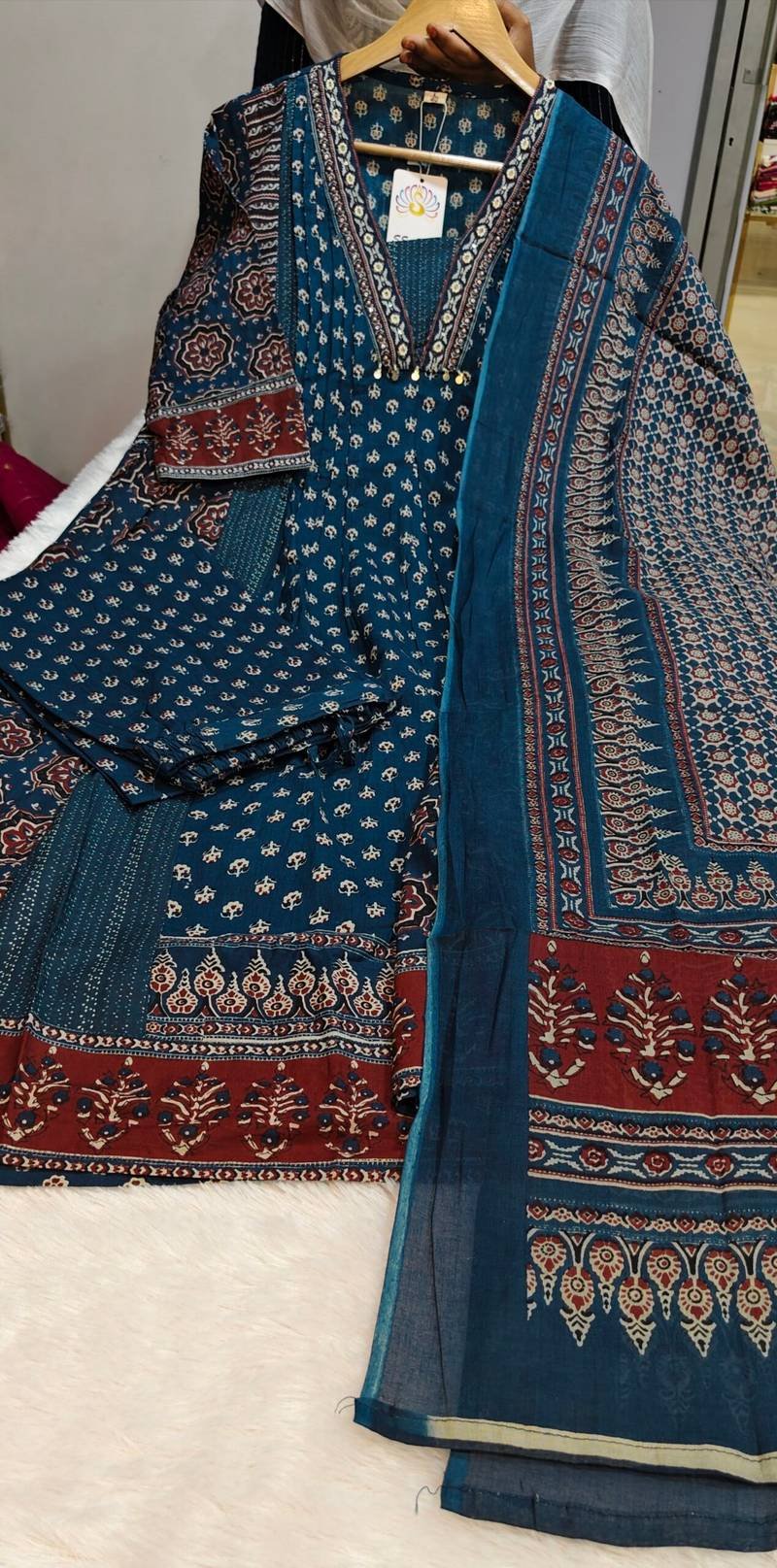 Elegant Premium Cotton Chudi Set designed for comfort and style. Crafted from high-quality breathable cotton fabric, this outfit ensures all-day comfort while maintaining a trendy look. Featuring a stylish side-open or umbrella/A-line kurti design paired with a perfectly matching bottom and dupatta, this set is ideal for both casual wear and festive occasions.