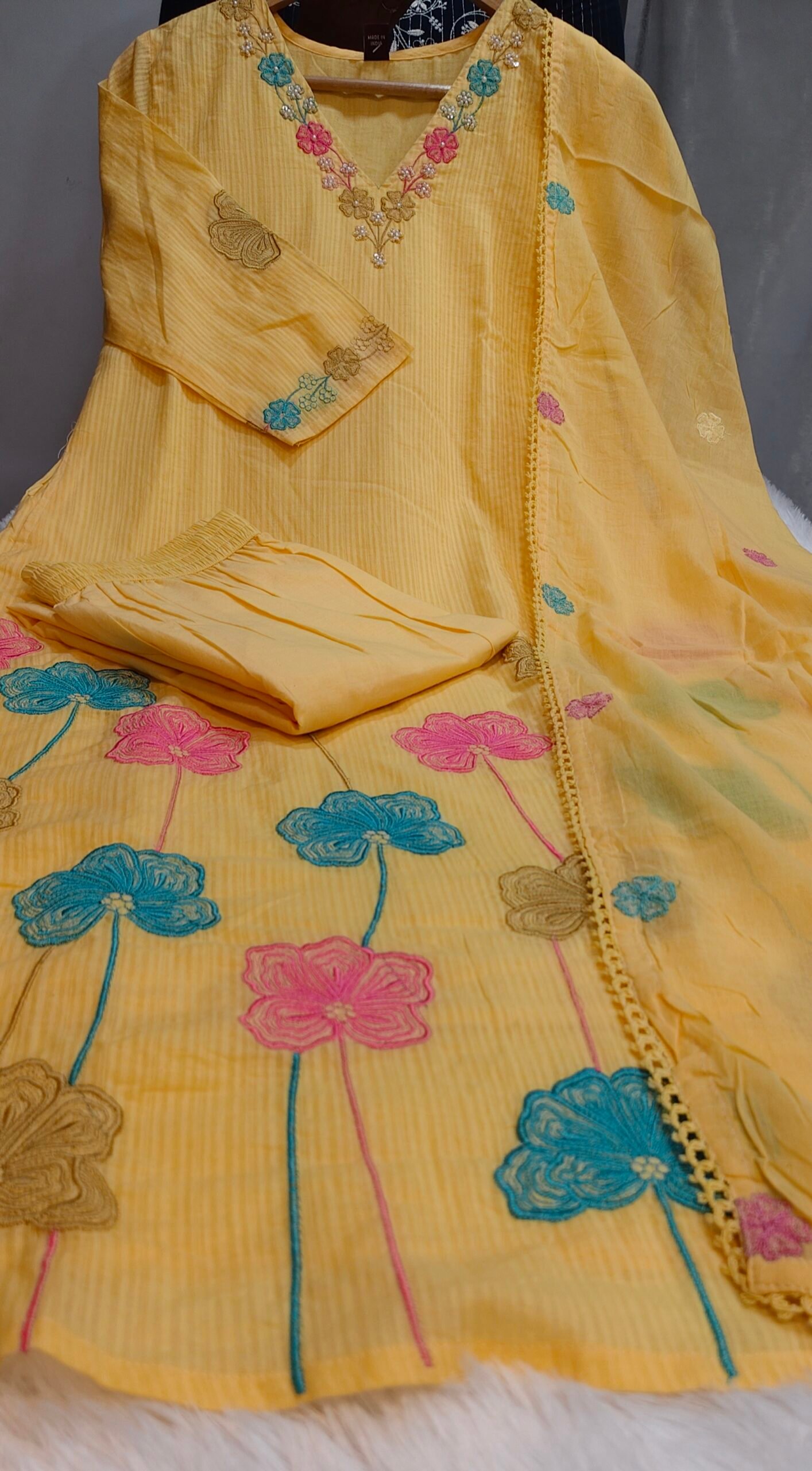 Elegant Premium Cotton Chudi Set designed for comfort and style. Crafted from high-quality breathable cotton fabric, this outfit ensures all-day comfort while maintaining a trendy look. Featuring a stylish side-open or umbrella/A-line kurti design paired with a perfectly matching bottom and dupatta, this set is ideal for both casual wear and festive occasions.